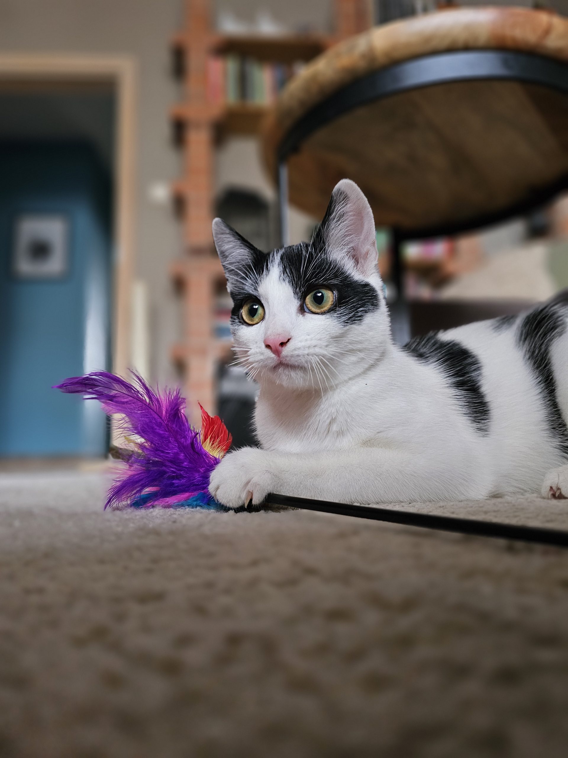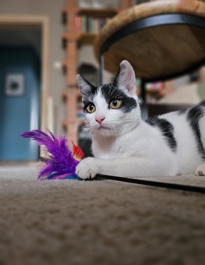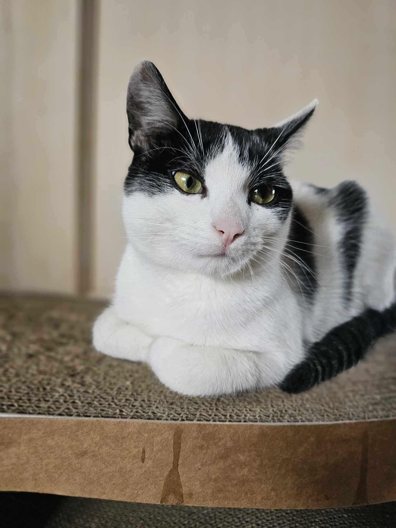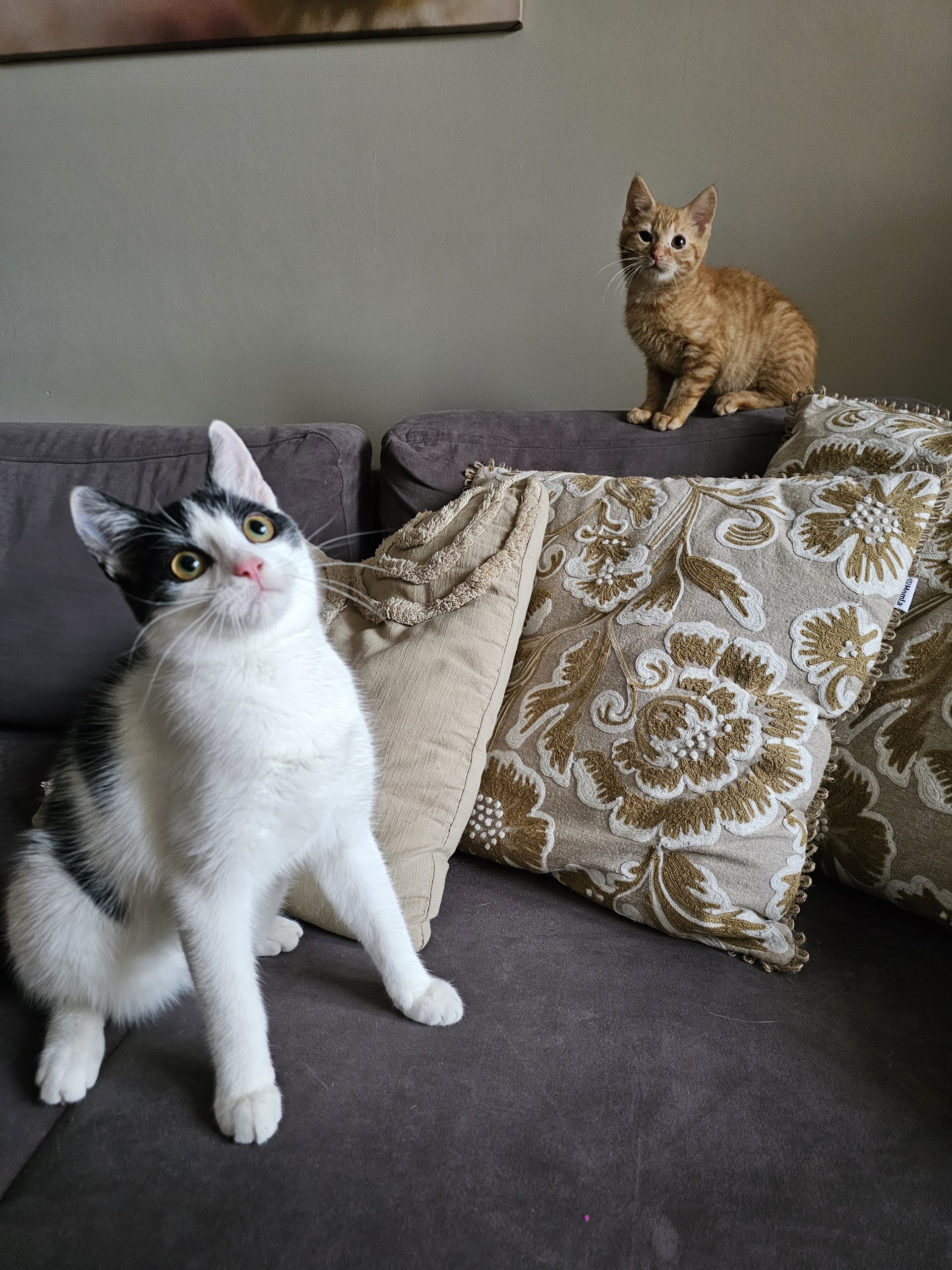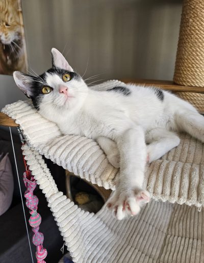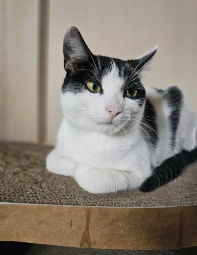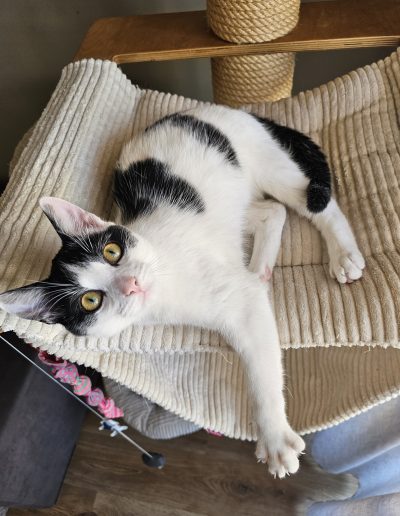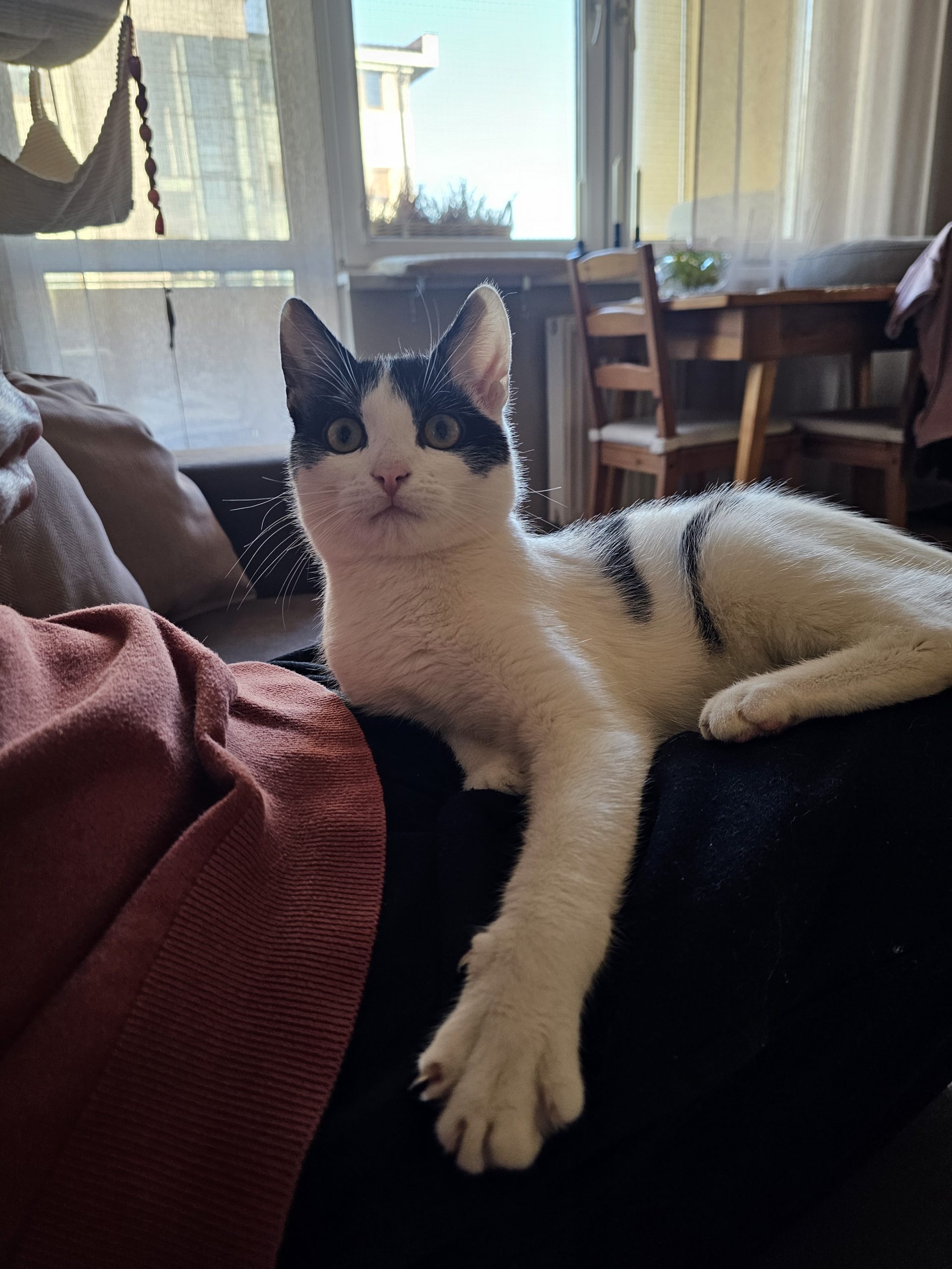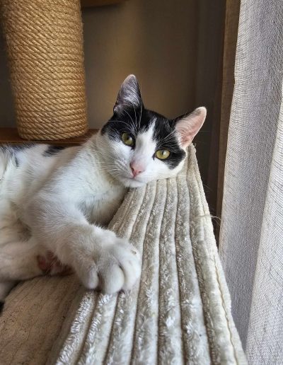 Bulion jest słodziakiem! Lubi inne koty, a szczególnie dobrze dogaduje się z Arnim, małym rudym brzdącem. Bulionik, choć w pierwszym kontakcie jest nieśmiały, to kocha człowieka – w szczególności jego kolana, na których robi piruety, fikołki i inne wygibasy.