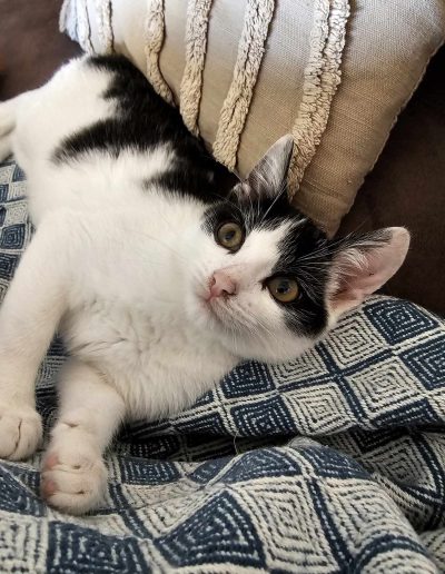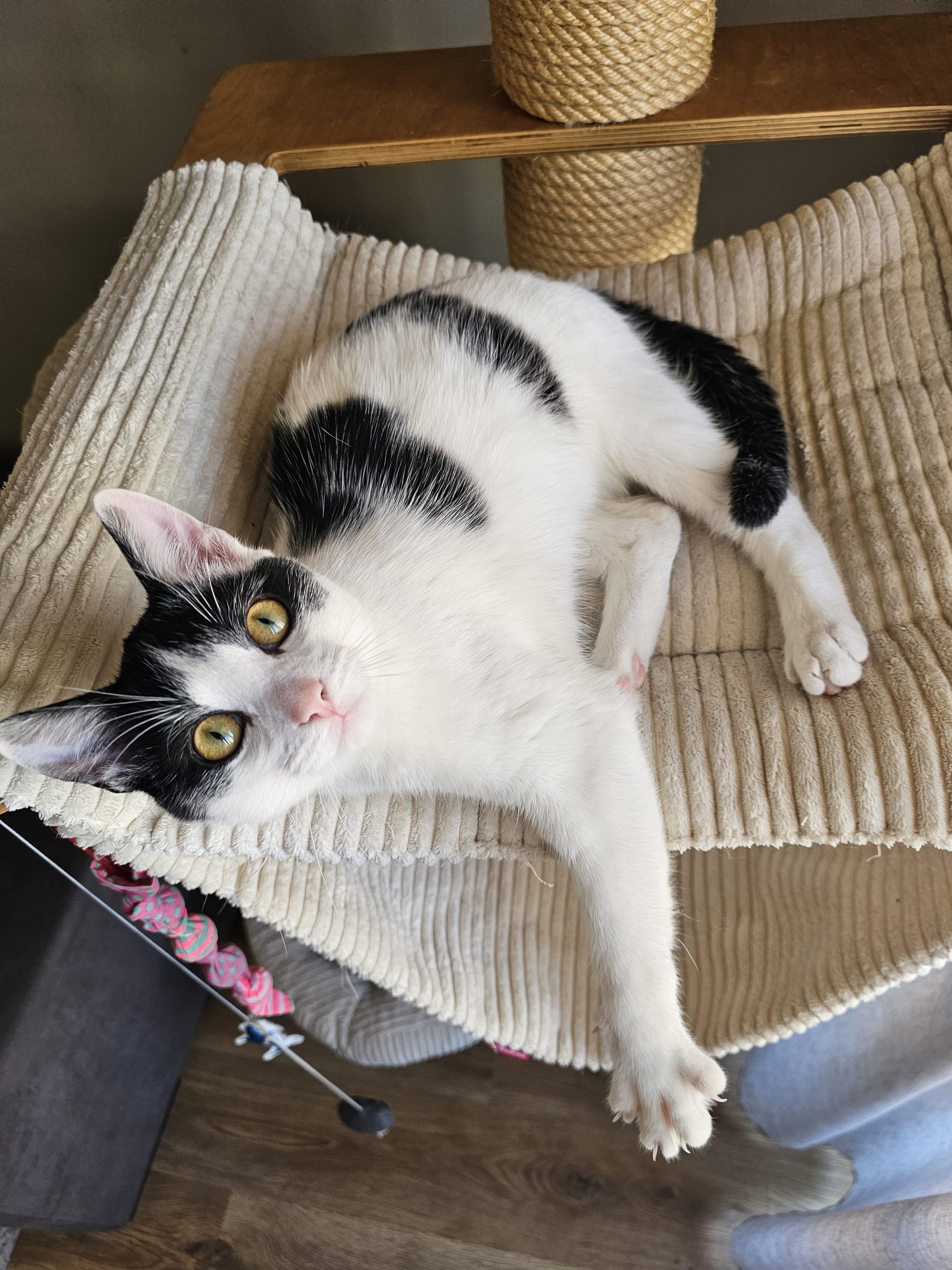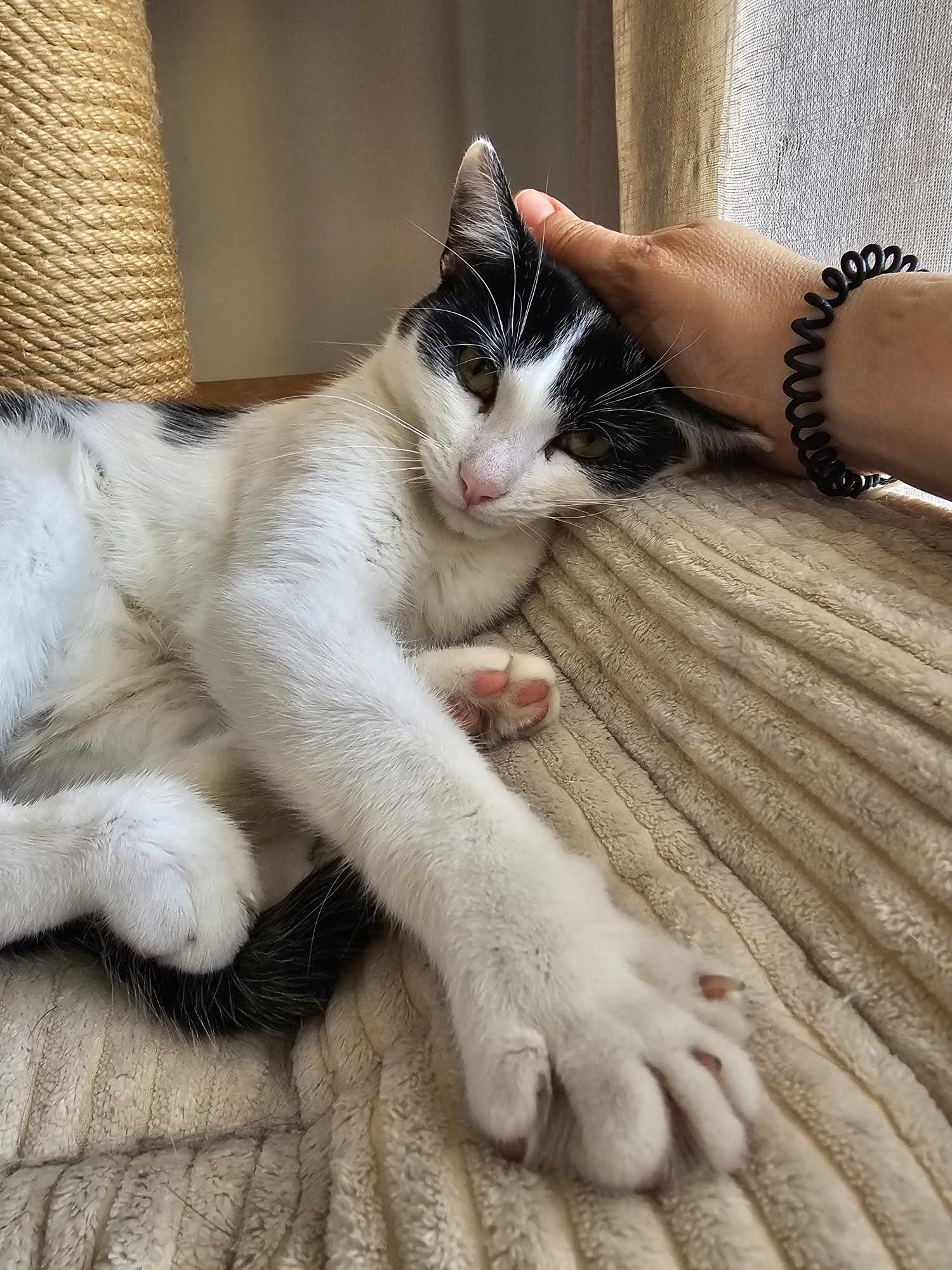 Bulion jako niesamodzielne kociątko stracił pod kołami auta mamę. Biegał po osiedlu nawołując ją. W tej ogromnej tragedii miał jednak trochę szczęścia, bo w okolicy przechodziła nasza wolontariuszka, której po wielokrotnych próbach udało się złapać malucha. Tak trafił do domu tymczasowego, gdzie został zaopiekowany.
