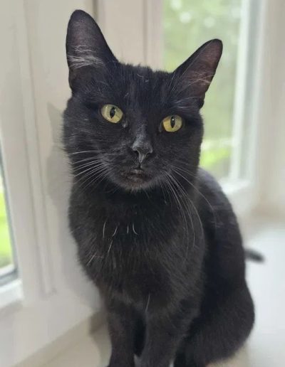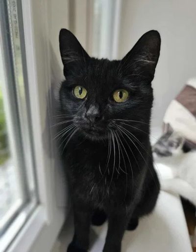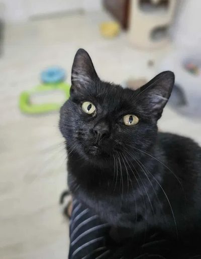Poznajcie Chryzię – drobną, czarną koteczkę, niezwykle miziastą, czułą i kontaktową – kocha ludzi, lubi towarzystwo innych kotów, pięknie się bawi i mruczy, gdy tylko ktoś poświęci jej chwilę uwagi.
