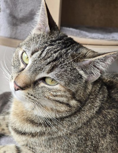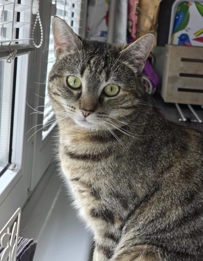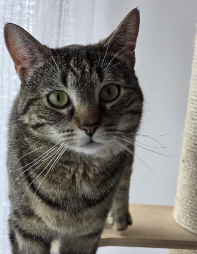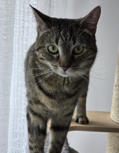 Kokosanka została znaleziona na środku jezdni zaraz po tym jak została potrącona przez samochód. To kocie dziecko miało wówczas niespełna trzy miesiące. Na skutek wypadku doznała złamania miednicy i ogona. Niedowład tylnych nóg nie pozwalał na samodzielne chodzenie. Zabraliśmy ją do lekarza i podjęliśmy walkę o zdrowie i sprawność fizyczną. Korzystaliśmy z konsultacji z różnymi specjalistami. Dziś kotka choć odrobinę niepełnosprawna (bo utyka na prawą tylną łapę), cieszy się życiem jak każdy szczęśliwy kot. Biega, szaleje z innymi kotami, wspina się na drapaki. Niepełnosprawność nie przeszkadza jej w codziennym funkcjonowaniu.