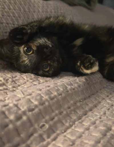 Panna Migotka to maleńkie kocie dziecko zostało znalezione przy ruchliwej ulicy, kiedy samotnie błąkało się wśród aut. Dzięki ludziom, którym los porzuconych zwierząt nie jest obcy, została zabrana z ulicy i zabezpieczona przez fundację.