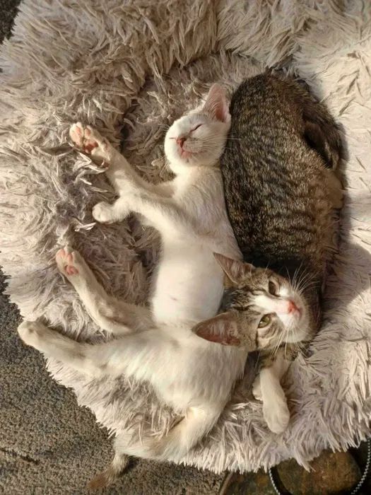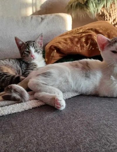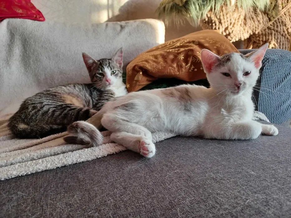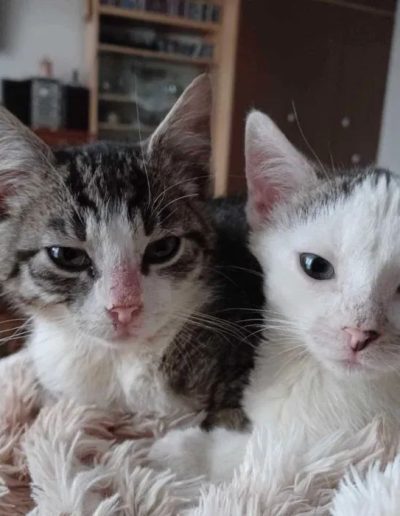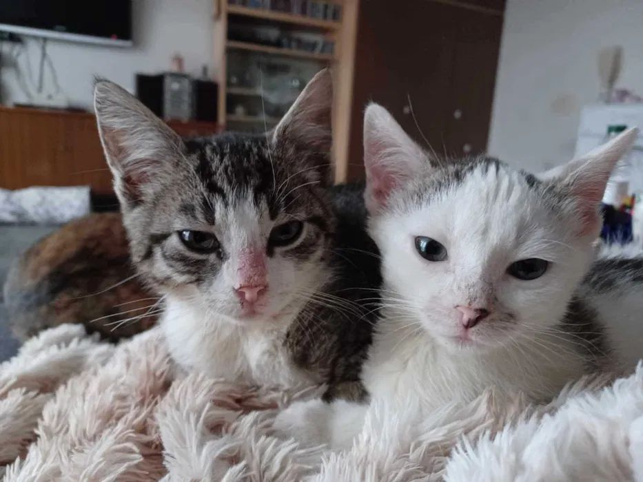 Mimo tego, że jako maluszki tyle w życiu przeszły są kochanymi pieszczochami. Adopcja ich w dwupaku byłaby wskazana, bo są ze sobą silnie związane.