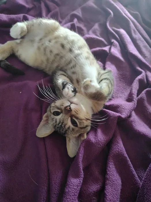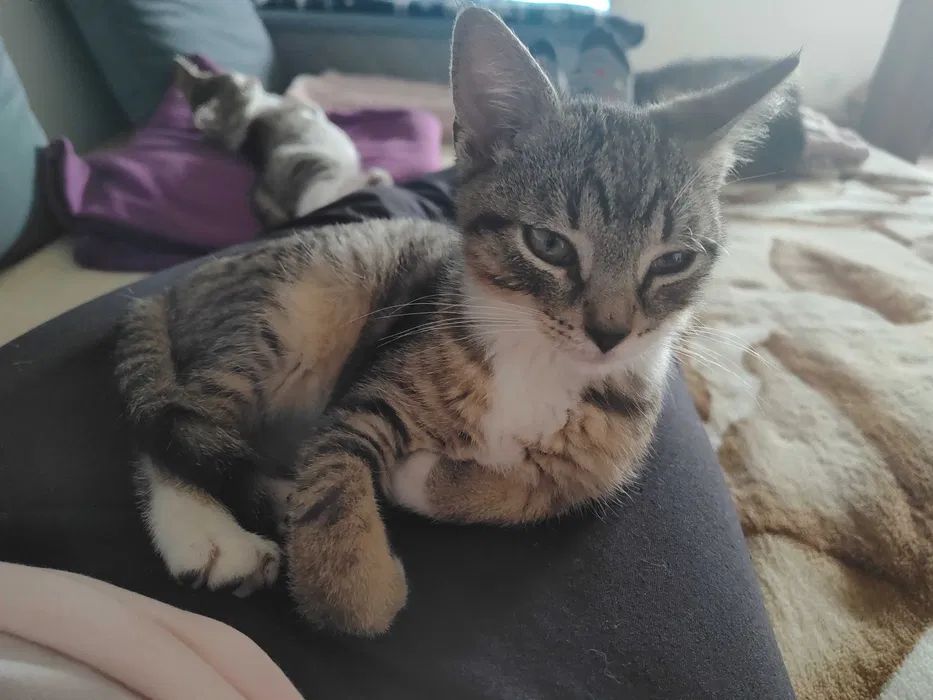 Kocha głaskanie i przytulanie do człowieka. Daje buziaki, i liże po policzku. Nie jest nachalna, umie odpuścić. Ma zadatki na prawdziwą kocią przyjaciółkę.